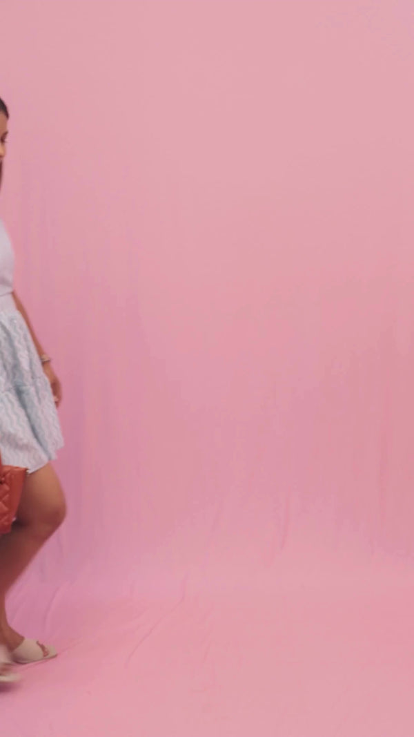 Color: White base with light blue zigzag print