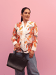 This casual and comfortable cotton blend top features vertical hand block-style stripes in shades of pink and white, accented with a short button placket at the front. Designed for everyday wear with a relaxed silhouette and breathable fabric.